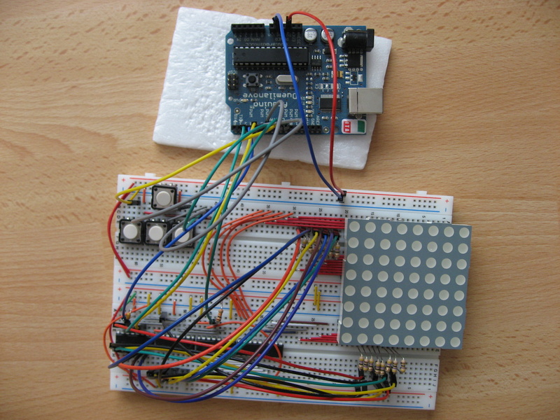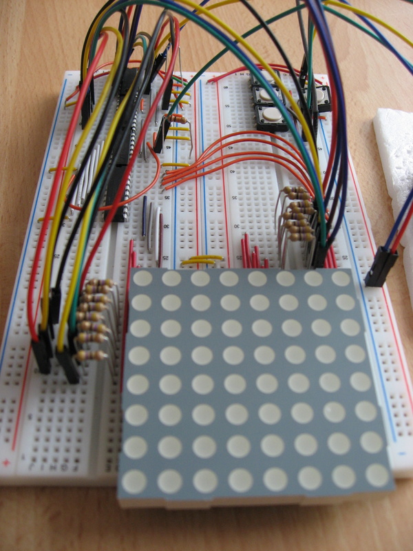byte col = 0; byte row = 0; long rowoutput; long redoutput; long greenoutput; long redoutputrow; long greenoutputrow; int matrix[MATRIX]; int snake[MATRIX]; int newsnake[MATRIX]; int snakehead = 0; int oldsnakehead = 0; int snaketail = 0; int startingpoint = 15; int direction = 1; boolean buttonPressed = false;