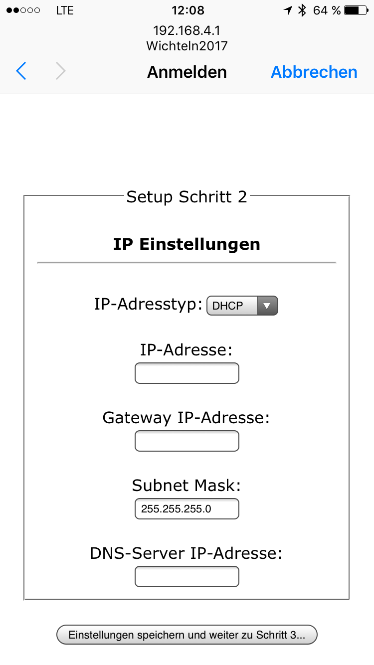 IPAddress dns(0,0,0,0); //DNS Server IP-Adresse bei statischer Konfiguration